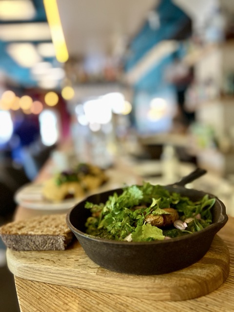 Ich habe das Kichererbsenomelette gefühlt mit Pilzen und Gemüse. Meine Freundin das Scrambled Tofu (Rührei). Du kannst dir aber auch ein klassisches Frühstück mit Croissants, Sauerteigbrot und diversen süßen oder herzhaften Aufstrichen zusammenstellen. Wem gesunde Ernährung wichtig ist, geht hier auf jeden Fall als zufriedener Gast.